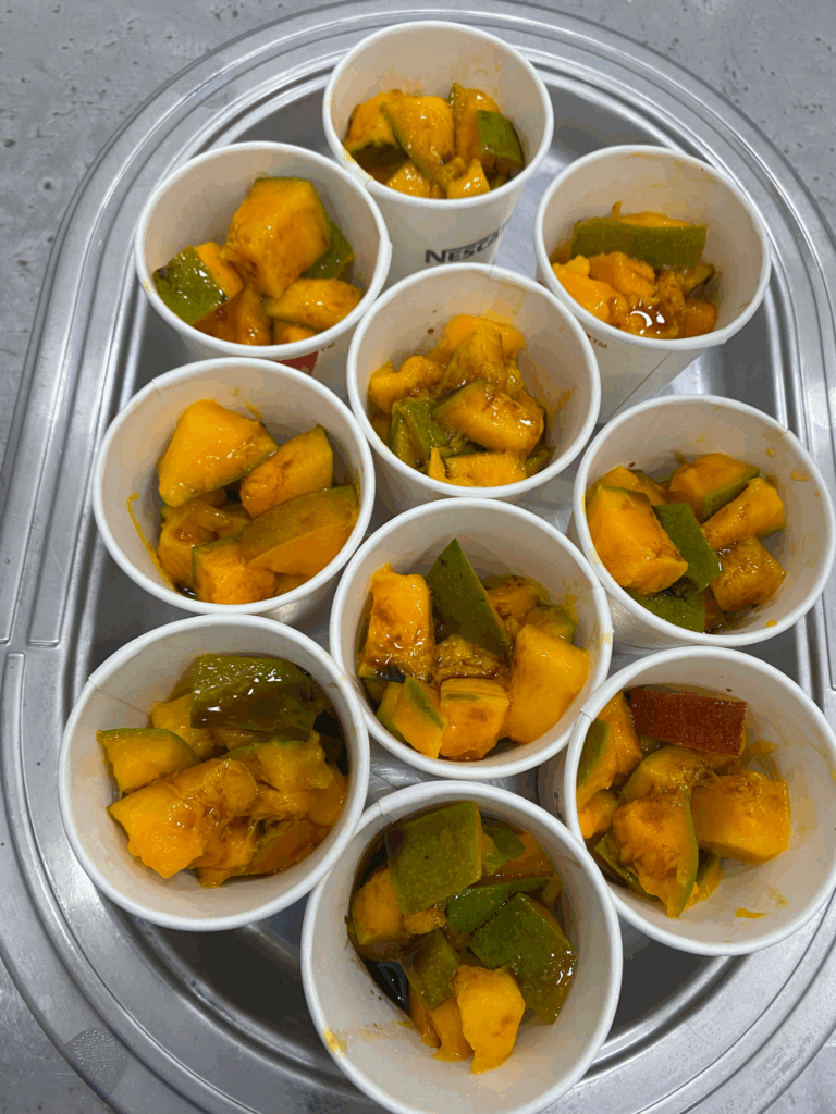 O grupo iniciou o curso no mês de fevereiro com entusiasmo, conhecendo toda a dinâmica das aulas e mergulhando nos fundamentos essenciais da gastronomia. Entre os conteúdos abordados, destacam-se as regras de segurança alimentar, manipulação correta dos alimentos, técnicas de higiene, lavagem adequada das mãos, uso correto das cores das tábuas de corte e os diversos tipos de cortes de legumes e vegetais – sempre com foco na importância e aplicação prática de cada técnica.
